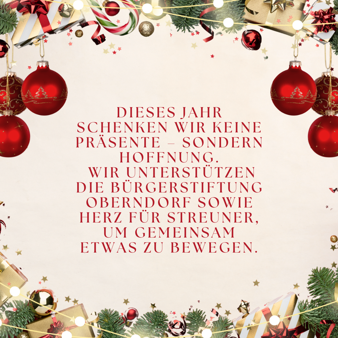 Gerade zum Jahresende ist es uns ein besonderes Anliegen, etwas zurückzugeben – als Dank für das Vertrauen, die Zusammenarbeit und die vielen wertvollen Begegnungen im vergangenen Jahr.